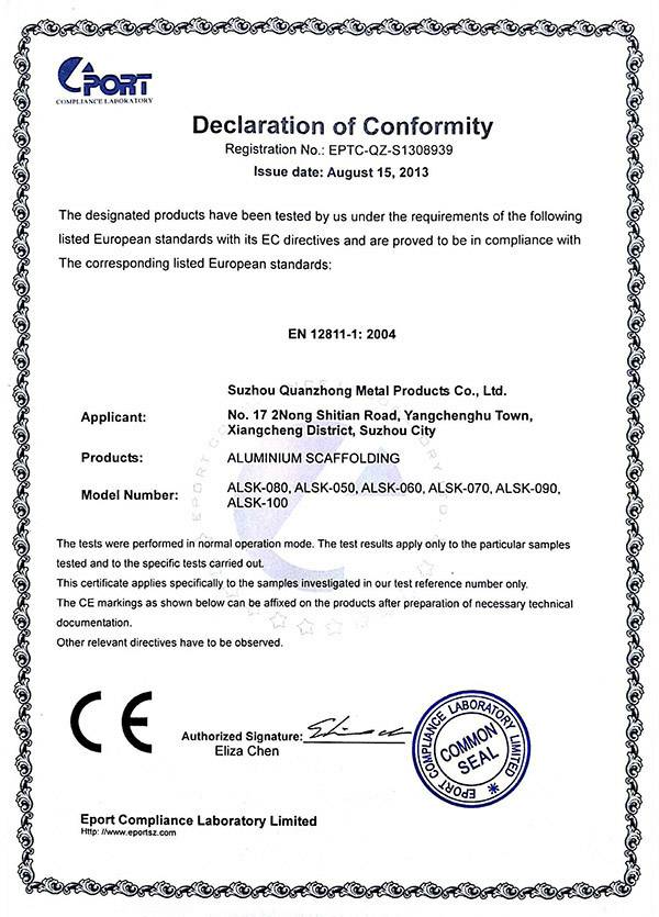 米兰体育-米兰milan(中国)专注铝合金制品的开发“产品就是人品”的企业理念,不断进行技术创新、设备创新、服务创新、和管理方式创新来继续研发出更多满足未来发展需要的产品, 公司产品通过欧盟认证取得CE认证并取得证书,铝合金脚手架系列产品通过SGS认证,铝合金平台和梯具类产品均严格按照GB12142-2007,GB17888等标准设计生产。